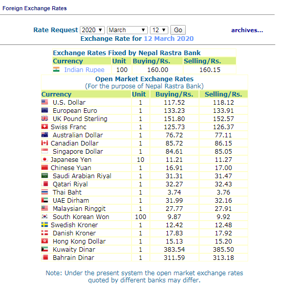 यस्तो छ, नेपाल राष्ट्र बैंकले निर्धारण गरेको आजको विनिमयदर (सूचीसहित)